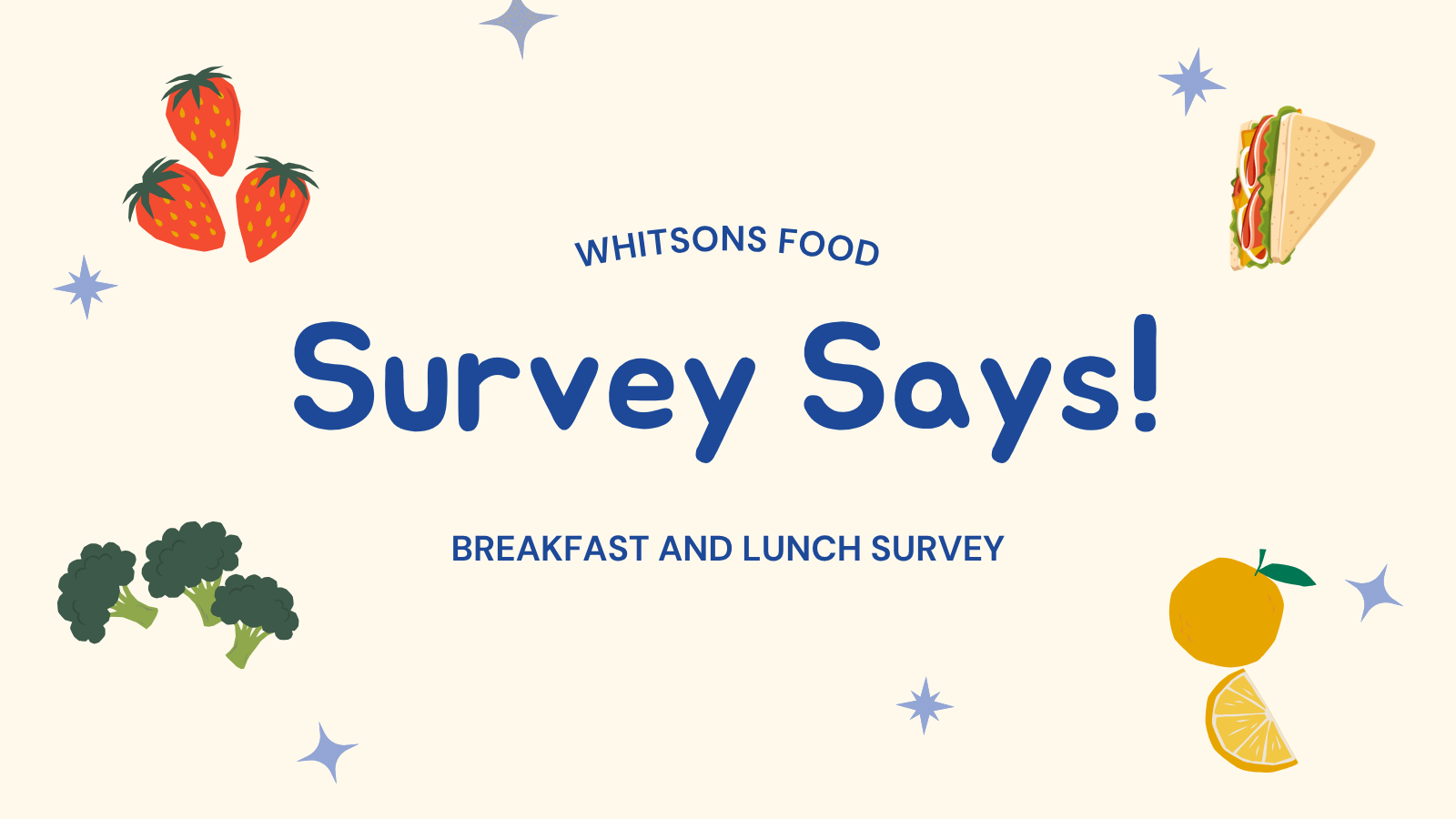 Take the Whitson's Survey!Provide our food service provider with feedback to make sure the breakfast and lunch experience for your child is the best it can be!The survey will be open through April ...