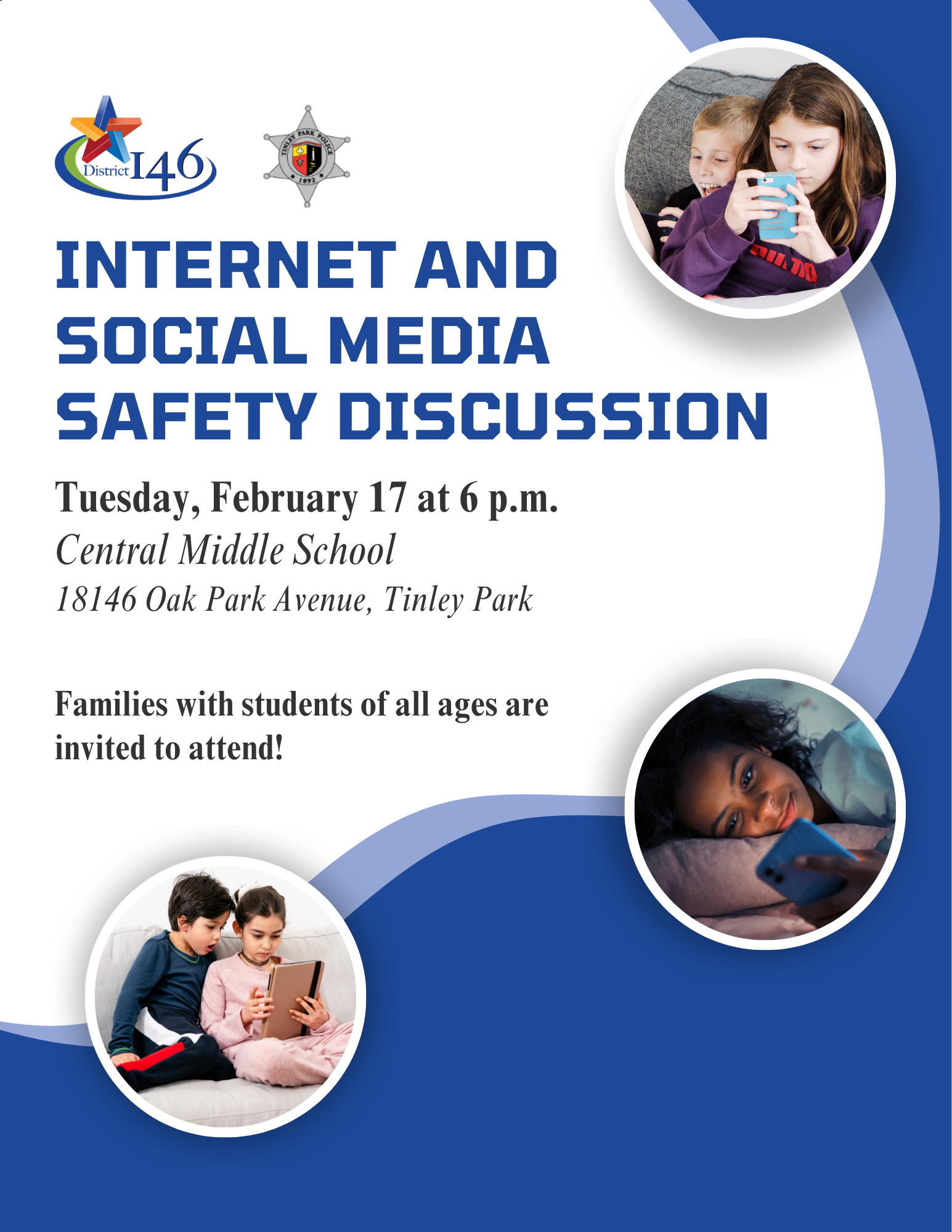 Family Social Media Safety NightCentral Middle School will be hosting a Family Social Media Safety Night presented by the Tinley Park Police Department. This informational session is designed to su...